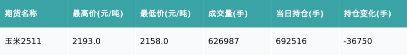 南财智讯9月26日电,南财金融终端盘后期货数据显示,大连商品交易所的玉米主力合约收涨0.55%,收盘报2178.0元/吨大资本,日内资金流出9878.55万元。其他相关指标见下表:
